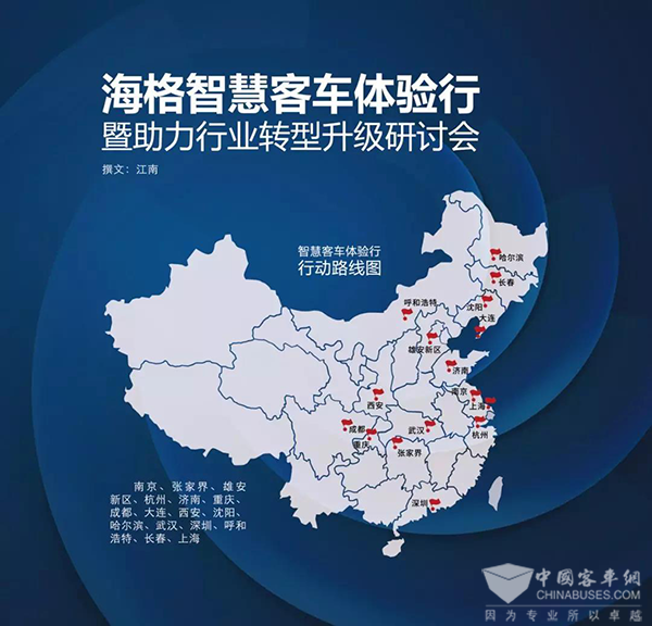 传统的公路客运模式已不能满足市场需求,“真心盼望转型升级”成了各家客运企业负责人掏心窝子的话,客运行业与企业的转型升级迫在眉睫。为帮助客运企业开拓转型思路,吸引更多客流量,自 2017年7月起,海格“智慧客车体验行”从南京出发,走过了张家界、杭州、武汉、上海等16个地区,在所到之地掀起一阵“智慧转型风”,为客运企业带去了成熟经验和经典范例。