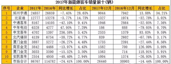 在第十个年头,中车电动用一组“抢眼”的数据,书写了圆满的答卷。在2018年1月中旬,2017年度客车行业各个细分市场的相关数据陆续出炉。客车市场争夺的主要战场——新能源客车市场,销售榜单也随之揭晓。