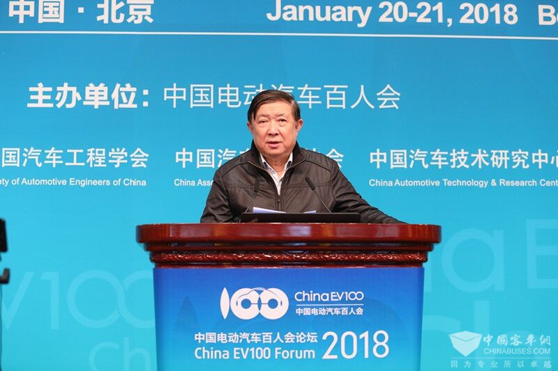 中国电动汽车百人会理事长陈清泰发表主题演讲