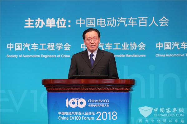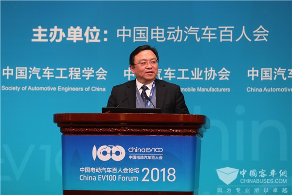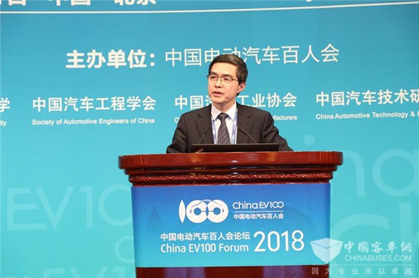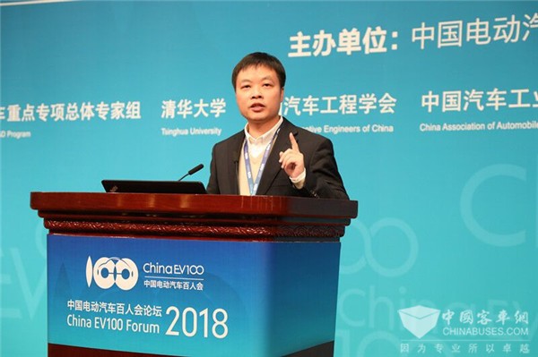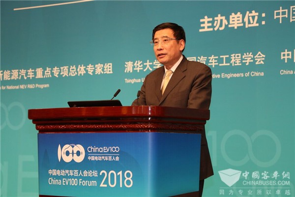 中国电动汽车百人会执行副理事长、中国科学院院士欧阳明高发表主题演讲