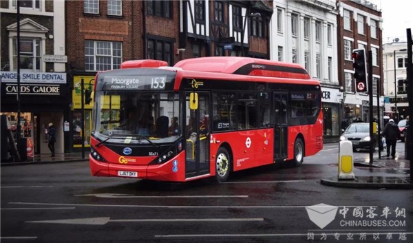 比亚迪纯电动大巴在伦敦153号公交线路运行