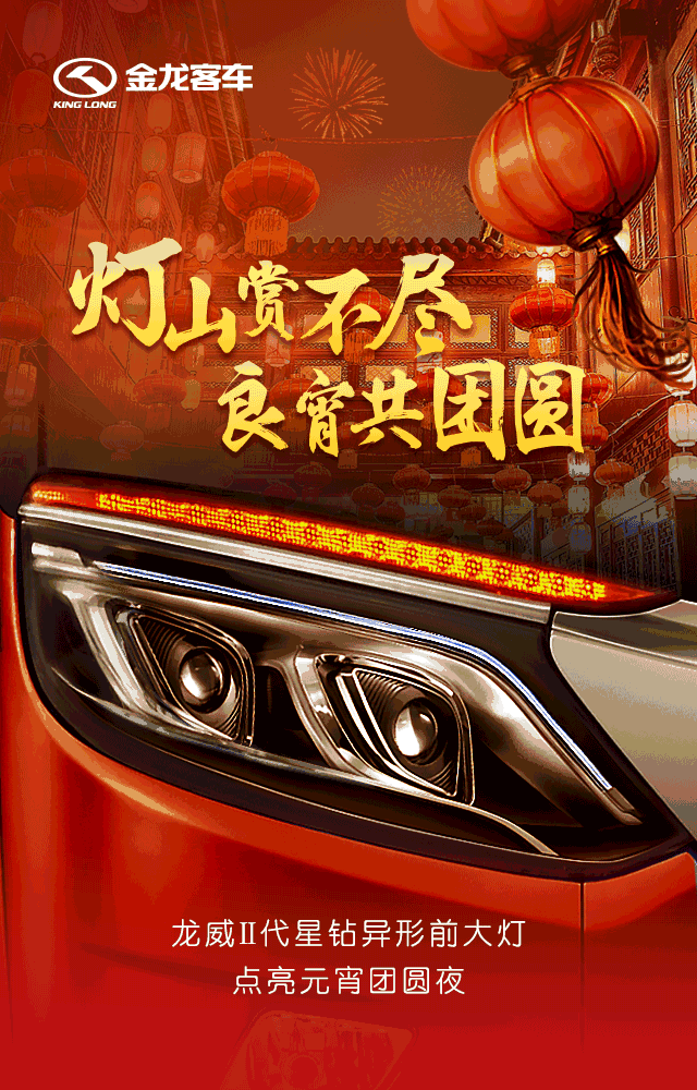 “灯山赏不尽,良宵共团圆”。紧扣“灯”这一主题的是大金龙的龙威二代广告海报,那对大灯,生生亮瞎广大群众的钛合金眼。