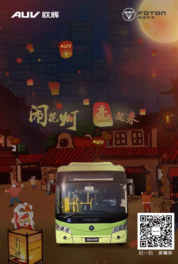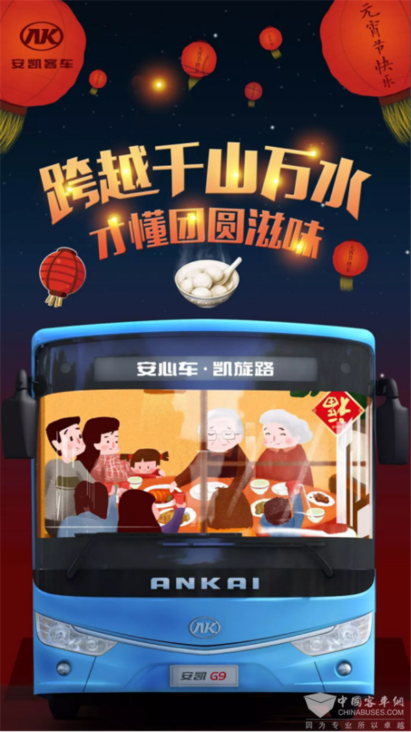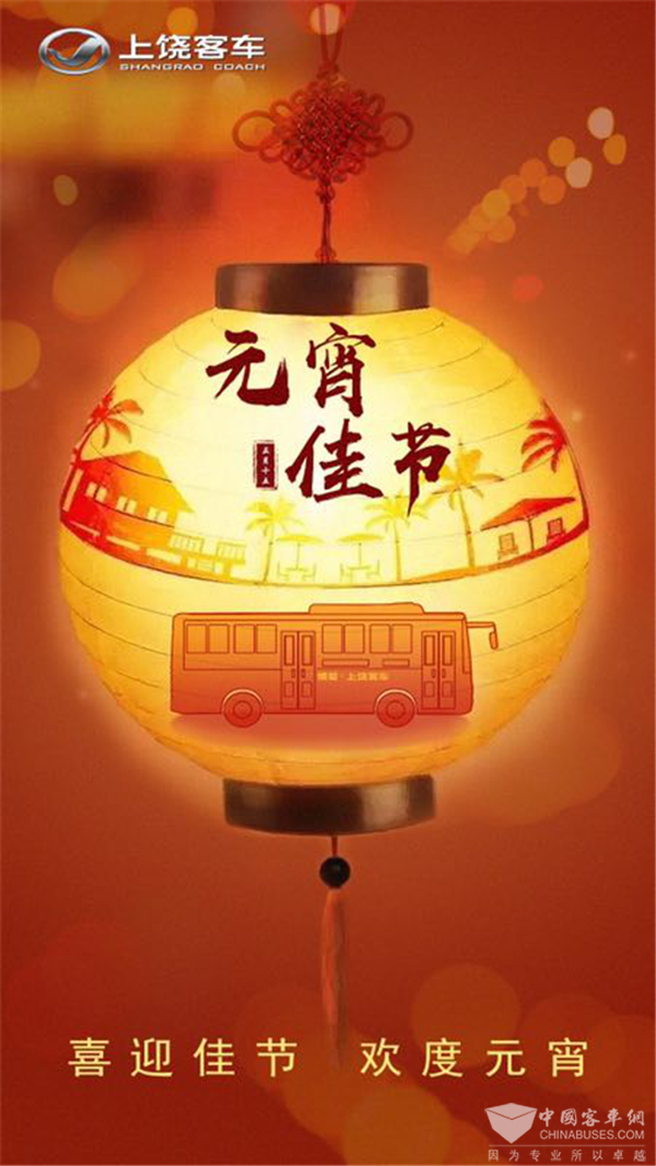 相比之下,把“圆月”、“花灯”、“客车”三大元素完美组合的海报,当属江西上饶客车。