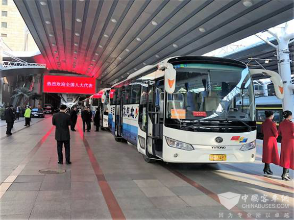 宇通客车在会场外等候代表、委员上下车