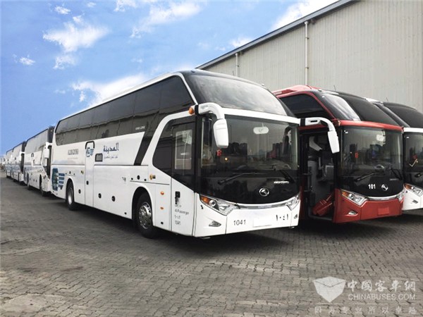 迎着春日阳光,150辆豪华公交整装待发“这批订单总共有350辆, 首批出口150辆公交后,后续我们还将有200辆豪华旅游大巴交付客户服务朝觐者。”金龙客车沙特市场负责人介绍。据悉,自2004年首次出口沙特以来,金龙客车以优异的产品品质与服务,赢得了许多沙特终端客户的心,不少客户对KING LONG “情有独钟”,本次购买150辆豪华公交的客户就是最好的例证,该客户自2011年首次购买金龙客车之后,已累计购买金龙客车近2000辆。