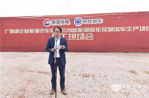 在奠基典礼上,申龙客车董事长陈大城代表东旭集团、东旭光电、上海申龙、广西源正全体员工向莅临奠基仪式现场的各位领导及各位来宾表示了热烈的欢迎。他表示,近年来,南宁市委市政府高度重视新能源汽车产业发展,出台了若干重要的产业扶持政策,并制定了切实可行的发展规划和实施路径,完善了相关的基础配套设施,为新能源汽车产业的发展奠定了坚实基础。他坚信,在南宁市各级党委政府的大力支持和帮助下,在东旭集团举全集团之力竭力推动下,广西源正新能源客车与物流车生产项目必将成为南宁市崭新的城市名片,成为推动地方经济社会发展的全新绿色引擎。