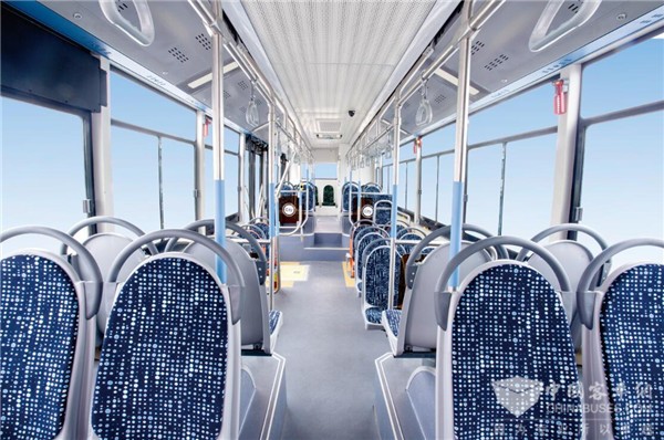 在动力方面,金龙12米氢燃料电池客车采用了中等功率燃料电池与中等容量动力电池的能量匹配方案,搭载60KW高性能质子交换膜燃料电池,峰值效率可达55%,寿命10000小时以上,具备高安全性、高经济性、高可靠性。