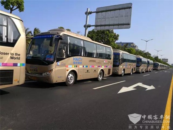 作为博鳌亚洲论坛官方指定唯一大巴服务保障单位,同时也是海南省重大会议、活动通勤服务保障单位,海汽运输集团股份有限公司旅游客运分公司(简称“海汽旅游公司”)共有120辆车参与本届论坛交通运输服务保障工作,其中50辆为海格客车,在所有参与论坛服务的大巴车辆中占比第一。