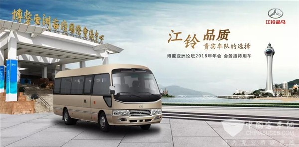 众所周知,博鳌亚洲论坛是中国连接世界的重要窗口,是亚洲国家年度盛会。服务论坛不仅是一项光荣的专项工作,且容不得丁点闪失。如果车辆在服务过程中发生故障,不仅将可能影响到活动的正常进行,而且会造成极为不利的影响,为此必须确保万无一失。江铃晶马汽车作为中国品牌客车企业的一员,能够为论坛提供服务用车,是江铃晶马的荣幸,更意味着一种责任。江铃晶马将鼎力服务本届论坛,以优质的产品、可靠的性能、良好的乘坐体验和完善的服务保障,完成博鳌亚洲论坛的交通运输服务保障工作。