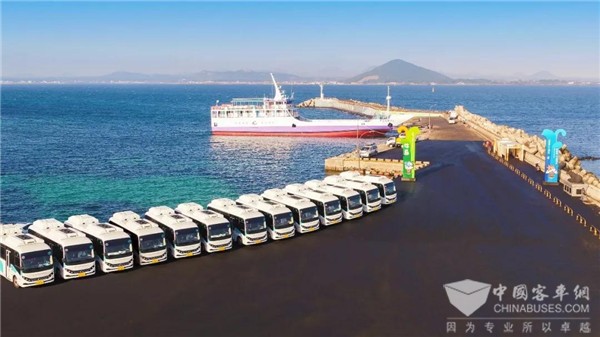 比亚迪纯电动巴士与牛岛风景相得益彰