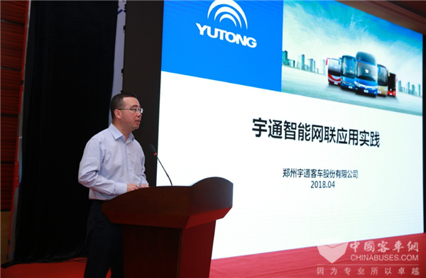 在论坛现场,宇通车端产品高级经理林明发表了主题为“宇通智能网联应用实践”的演讲。详细介绍了宇通在智能网联领域的研发进展、实践成果及未来的发展规划等。