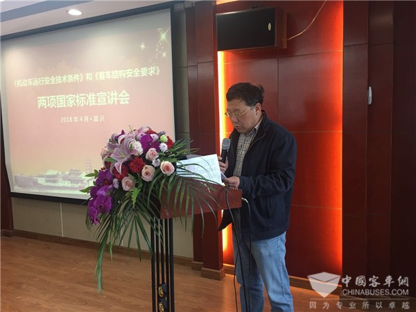 2018年4月14日, 历史文化名城,中共一大会议召开地的南湖红船之畔,浙江嘉兴迎来了中国城市公共交通学会、嘉兴市公共交通协会、中国公交信息网联合举办的“两项国家标准宣讲会”,来自全国多家公交公司、客车及配套供应商企业100多人参加了本次宣讲会。中国公交学会副秘书长袁建光、嘉兴公交协会会长杨德泉、嘉兴市公交公司总经理顾铁伟分别致辞,公安部交通管理科学研究所孙巍副主任、GB/T13094标准编委会主要成员高振华详细讲解了GB7258和GB13094的内容,以及应用于公交领域的主要标准要求。