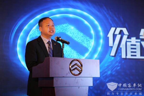 厦门金旅国内销售总监赖志艺在天津首发会上致辞