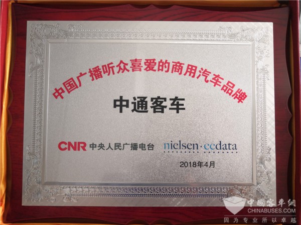 中通客车荣膺 2018“中国广播听众喜爱的商用车品牌”