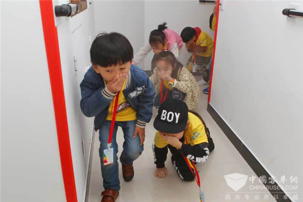 场馆内,校车安全知识是重要展示单元,配合校车安全逃生区的实践体验,如怎样从逃生门逃生、怎样正确使用灭火器和安全锤等,帮助孩子们了解日常乘坐的校车,让孩子更安全,让家长更放心。