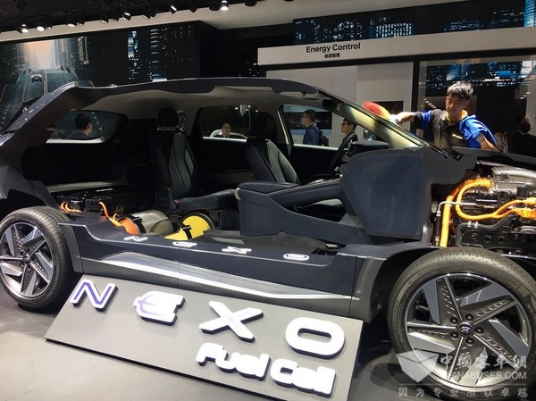 韩国现代汽车首次华亮相新一代氢燃料电池车NEXO同期展出两辆同款车(上图为解剖车),在寸土寸金的北京国际展览中心,现代公司重视程度可见一斑。