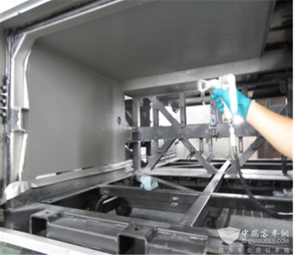 新兴防火涂料的防火、防腐、耐冲击等综合性能优异,且防火涂料喷涂厚度较薄,不占用客车电气舱空间,不影响电舱内电器件的布置安装,在实际应用当中仅需增加或调整部分生产工序,购置喷涂设备,对整体生产流程影响很小,工艺难度低,值得推广使用。