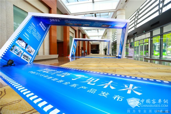 通往发布会现场的路,足以体现宇通的用心。其以科技感元素,搭建了一条“历史”走廊,开启了一场遇见未来的超越之旅。