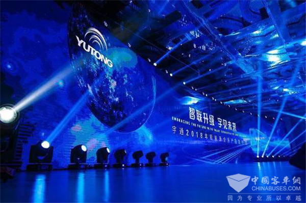 发布会以“智联升级 宇见未来”为主题,现场蓝色灯光营造出满满的科技感,与宇通品牌的色调相得益彰,充分彰显了宇通作为行业领导者和创新引领者的强大实力。