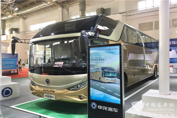 而参展的另一款申龙SLK6126双风挡公路客车亦堪称现代公路客车精品之作。新6系是申龙客车新一代豪华公路车旅游客车产品,倾注了申龙研发团队的大量心血。该产品不仅是传统意义的升级换代产品,更是在整车档次、安全性、节能性、舒适性、驾驶体验、维修保养等方面,均有了显著的提升。该车整车轻量化设计,采用全承载结构,应用高强度钢,保证结构强度的同时简化了构件;其车辆燃油消耗量限值22.3L/100km,低风阻造型、低滚阻轮胎、轻量化车身等特点,能针对不同路况对应匹配动力系统,极大降低车辆能耗,节能环保;而正面碰撞预警、自动紧急制动系统(AEBS)报警、车道偏离预警等智能防护系统,又能提高车辆主动安全性;集成中控、多功能方向盘、气助力变速箱等特色功能,让车辆的操控更为智能便捷;增强型悬挂系统、智能空调、人机工程座椅的设计应用,则提高了驾乘人员舒适性。