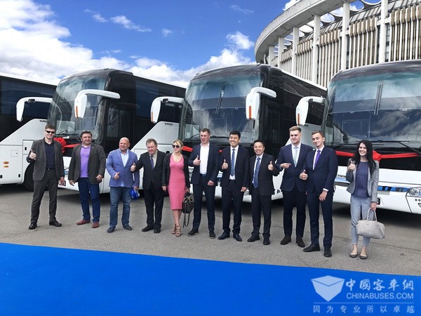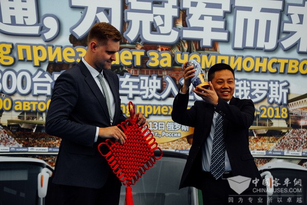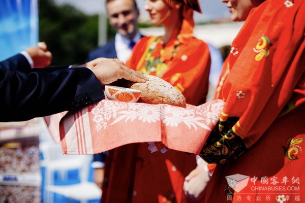 交车仪式上,身着民族盛装的俄罗斯姑娘为来自中国的贵宾献上代表待客最高礼遇的面包和盐;中方代表则将象征友谊和智慧的中国结礼赠俄方。圣彼得堡运输协会授予宇通“最佳中国伙伴”荣誉,列宁格勒州运输协会授予宇通“最佳旅游巴士供应商”荣誉,并期待双方在交通运输领域有更深入的合作。宇通客车、SpbTransBus企业负责人分别致辞,让这份共赢的期盼,续奏双方合作乐章。