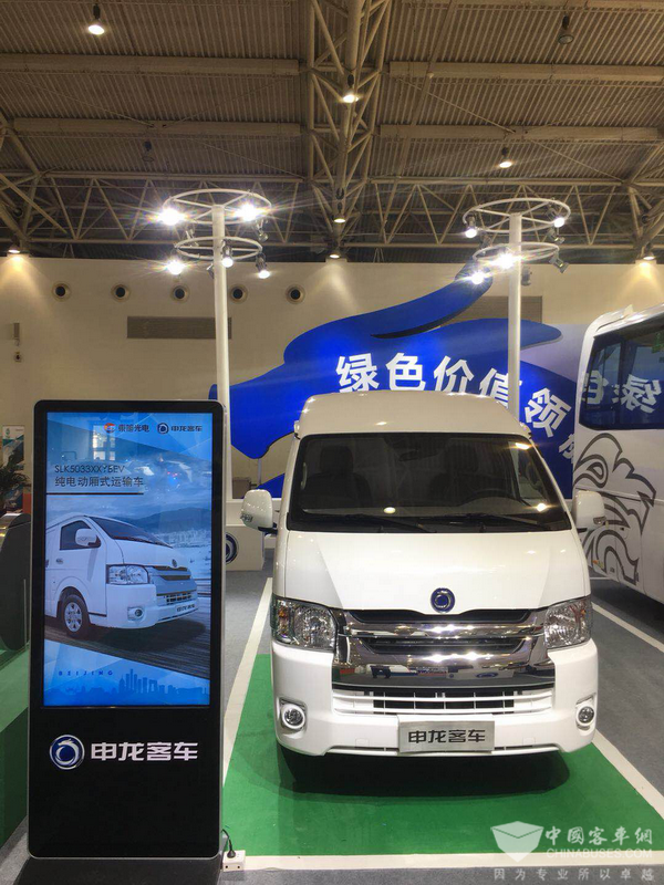 此次参展的另一款车型申龙SLK5033XXYBEV纯电动厢式运输车,是申龙客车在新能源物流车领域的精品之作,其特点也非常鲜明,仅需C照便可驾驶,同时该车非常完美地满足了城市物流需求,拥有超大承载空间,货仓容积可达6立方米。整车驾驶区与载货区隔断,确保了行车安全;低地板高度的设计,使上下货更便捷,并可方便地使用叉车上下货物。更难得的是,设计者从车内容积和使用安全角度充分考虑,将电池安装在了车身底部,动力电池防护等级达到IP67,不仅增大车内空间,也让车辆安全性进一步提升。该车型每公里耗电仅约0.2度,折合费用约0.1元,不仅绿色环保,而且能有效降低运营成本,最大限度体现了“电动化、智能化、轻量化”多种特点。