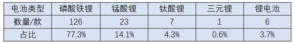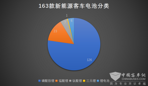 在163款新能源客车中,选择宁德时代磷酸铁锂电池的64款,排名第一;14款客车搭载微宏锰酸锂电池,位列第二,北京国能电池配套12款客车,合肥国轩配套9款,惠州亿鹏配套8款,7款客车选择了银隆钛酸锂电池,南京创源、惠州亿纬、中航锂电分别为5款客车配套电池。盟固利、比亚迪、力神、南浔遨优、芜湖天弋、沃特玛等多家电池企业也为申报的新能源客车提供配套。