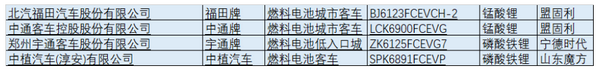 本批申报的客车中,有4款燃料电池客车,分别来自福田、中通、宇通、中植汽车4家企业。燃料电池客车在动力电池选装方面,有2款搭载锰酸锂电池,2款搭载磷酸铁锂电池。其中,福田牌、中通牌燃料电池客车搭载盟固利的锰酸锂电池,宇通牌选择了宁德时代,中植汽车选择了山东魔方的磷酸铁锂电池。