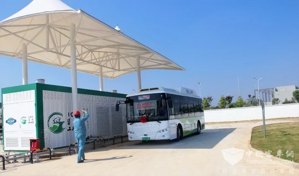 “开沃﹒泰歌”号F85氢燃料客车现场加氢