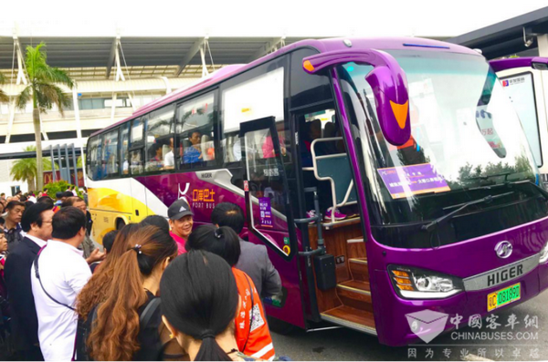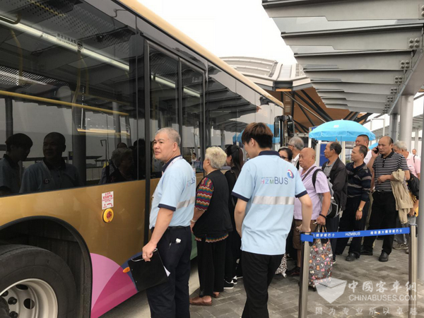 据现场工作人员介绍,这是珠海万达通港珠澳大桥珠海口岸客运服务有限公司全新投放的海格客车,共20辆,其中10辆为纯电动客车,主要提供到珠海口岸的接驳服务,服务初期共有6条市内专线:拱北专线、南屏专线、上冲专线、横琴长隆专线、体育中心专线、御温泉专线。