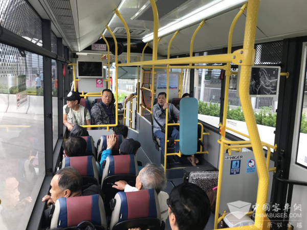 为了领略港珠澳大桥的非凡风采和感受中国制造的实力,24日一早,记者便启程来到珠海的拱北口岸,准备乘坐口岸巴士专线前往港珠澳大桥珠海口岸人工岛。也许是巧合,乘坐的接驳巴士恰好也是海格纯电动客车,紫色的车身外观,绿色醒目的纯电动车牌,高贵气质中透着一股清新风范。