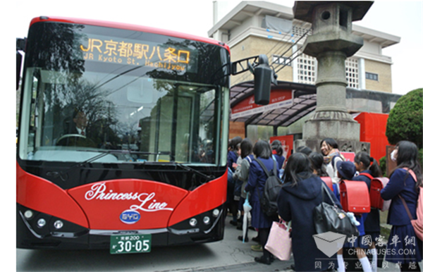 2015年初,日本Princess line公司购入5辆比亚迪K9作为公交车,运行在京都站八条口至京都女子大学路段,运营效果良好。2017年,比亚迪再一次将10辆电动大巴卖到了日本冲绳,在冲绳建立起首支纯电动巴士车队。