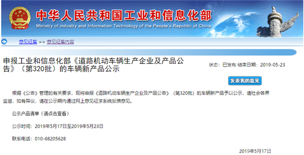 2019年5月17日,工业和信息化部在官方网站公示了申报第320批《道路机动车辆生产企业及产品公告》(以下简称《公告》)新产品。申报本批《公告》新产品新能源汽车产品的共有114户企业的429个型号,其中纯电动产品共108户企业401个型号、插电式混合动力产品共13户企业25个型号、燃料电池产品共3户企业3个型号。