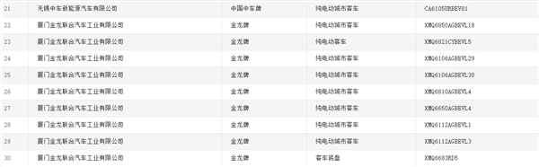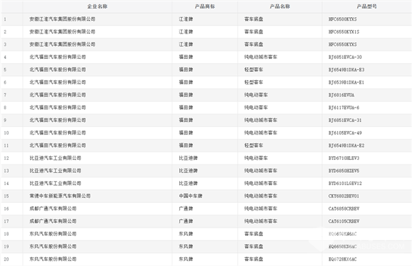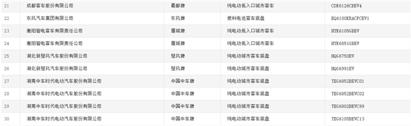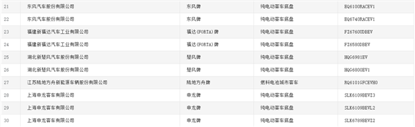 其中,插电式混合动力客车7款,燃料电池客车3款。具体来看,上榜的3款燃料电池客车产品中,分别来自厦门金龙、东风汽车集团、江苏陆地方舟三家企业。