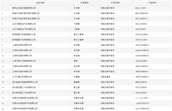 纯电动客车占比95% 工信部发布第320批道路机动车辆公告