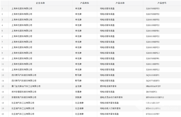 值得注意的是,在本批新产品公示中,中车电动共上榜26款客车,其中18款新能源客车(含8款底盘),在本批公示的所有新能源客车中位居首位。申龙客车和东风牌新能源客车紧随其后,分别上榜19款和17款客车产品。