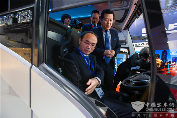 在展会现场,中国驻比利时大使曹忠明莅临宇通展台,见证了中国客车走出去步伐的加快。