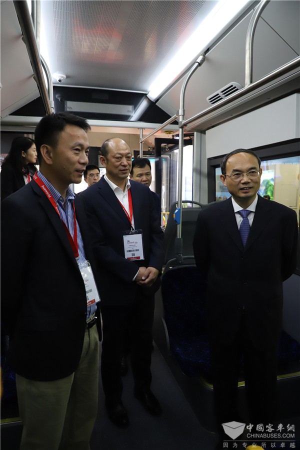 继2019年10月17日下午苏州金龙海格客车发布会吸引近百家世界各地的媒体到场参观报道,来自俄罗斯、科特迪瓦、爱尔兰、黎巴嫩等国家的海格经销商、客户以及战略合作伙伴斯堪尼亚高层代表也来到现场为海格加油助威。10月18日上午,中国驻比利时大使曹忠明一行在苏州金龙海格客车董事长陈笃廉、海外销售总监姜海峰的陪同下,参观了苏州金龙海格客车展台,并登上E8、E12两款海格新车,感受中国客车制造的工艺与创新。参观期间,曹忠明大使详细了解了苏州金龙目前的经营情况,包括产能与在欧洲的销售情况等。他对苏州金龙的发展表示肯定,同时勉励苏州金龙再接再厉,希望未来能在欧洲看到更多的海格客车。