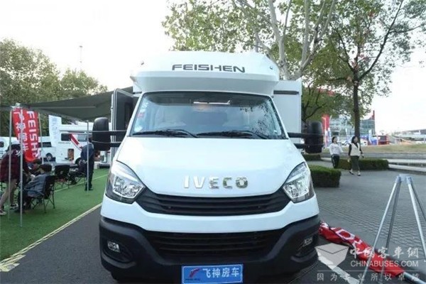 在动力搭配上,该车基于依维柯欧胜底盘打造,搭载3.0T涡轮增压发动机,在3500转时输出最大功率为125KW,最大扭矩为370NM,最高时速可达130KM/h。