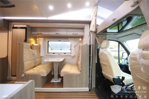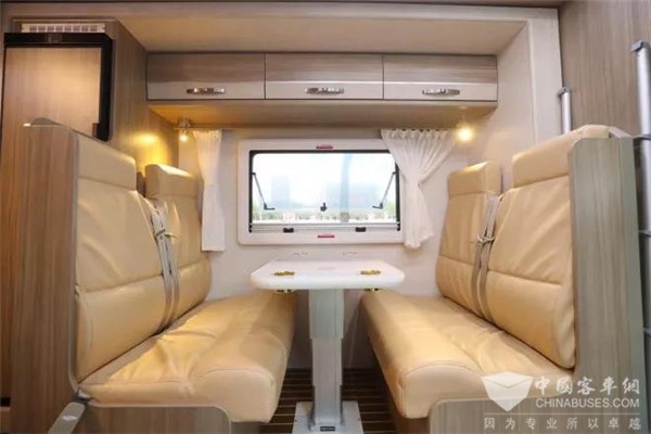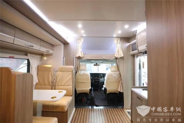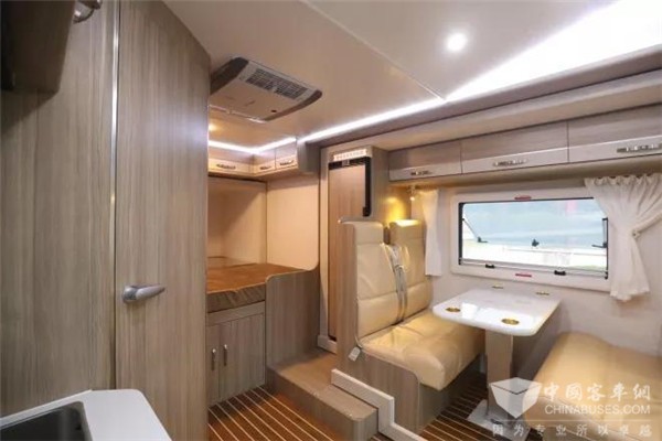 埃贝赫燃油暖风系统、进口特鲁马顶置驻车空调、烟感报警器、阅读灯、顶部吊柜、3000W逆变器一体机、400Ah免维护电池,150升净水箱+70升灰水箱,原车车载DVD+导航+音响系统等产品的配置,也使得其性能更加优越。