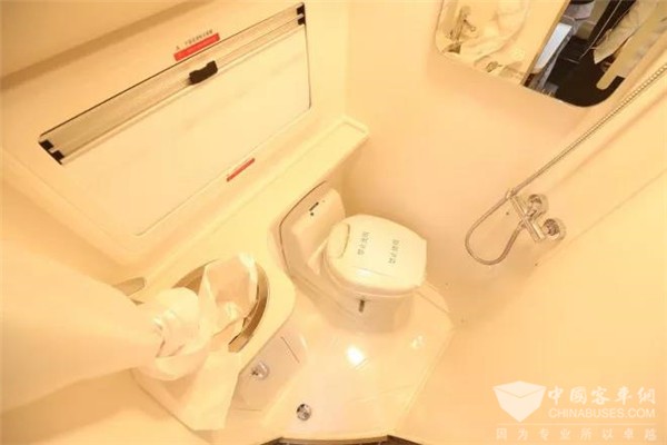 卫生间内除了赛特福德抽拉式马桶和洗手池外,本车卫生间还配备了20L的行车热水器,无需等待热水随时可用。