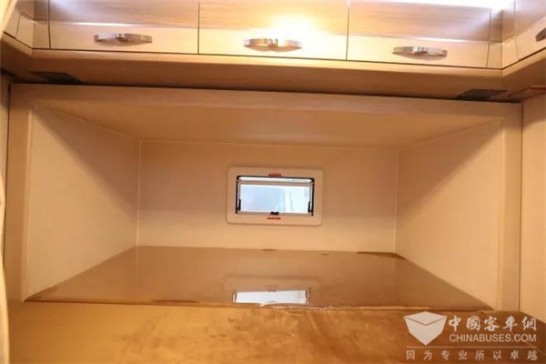 驾驶室上方为额顶床,尺寸为2100*600mm,可以容纳一个成年人休息,并且还配备了可拆卸扶梯方便上下。