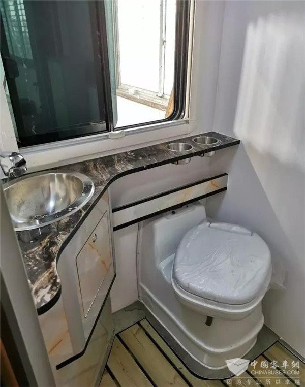 卫生间内配备洗脸盆、一体式水龙头淋浴花洒、塞德福特马桶、双向换气扇、化妆镜等,可选配配备一台韩国大宇智能滚筒洗衣机,方便出行时候的洗衣问题。