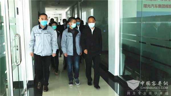 曙光汽车集团董事长胡新文,总裁梁文利,监事会主席、工会主席于红接待了调研组一行。胡新文对省、市领导到曙光汽车集团视察指导工作表示了热烈的欢迎;对省、市领导多年来对曙光汽车集团的指导和支持表示了衷心的感谢!“曙光汽车集团新一届管理团队有信心、有决心在省、市政府有关部门的指导下,实现企业转型升级和健康发展”,胡新文说”。曙光汽车集团总裁梁文利感谢省市政府等相关部门对曙光汽车集团在疫情防控、生产经营等方面的巨大支持,介绍了曙光汽车集团在疫情防控下“企业复工复产、供应链和生产经营”等情况。