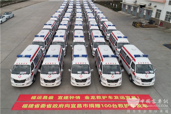 紧接着,金龙客车又圆满完成了福建省委省政府捐赠湖北宜昌100台救护车的生产和运输任务。这批救护车于3月25日凌晨全部抵达宜昌,当天分配到宜昌各县市区乡镇卫生院、社区卫生服务中心等基层医疗机构,支持宜昌市强化乡镇卫生院等医疗机构急救能力。