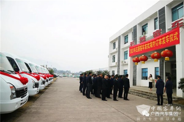 2021年1月21日,2021年五菱客车首批海外发车仪式在桂客发展举行。此次五菱客车首批海外订单一共20辆,将发往东南亚国家,以五菱品质为当地人民提供便利出行服务,贡献更多中国制造力量。