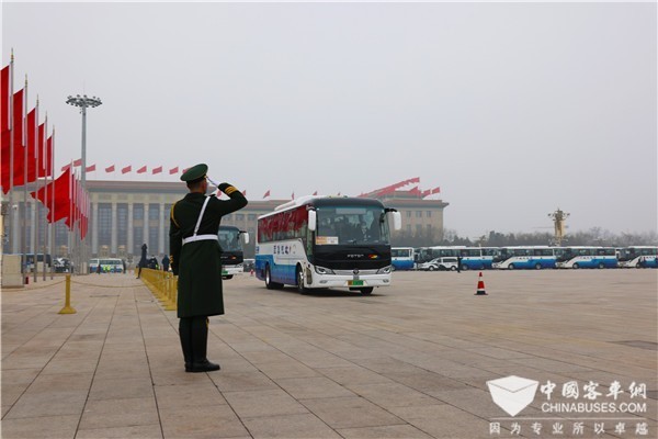 2019年,福田欧辉纯电动客车首次出现在护航保障车队中,实现了新能源客车服务全国两会的“零”突破后。今年两会期间,福田欧辉43辆绿色客车再度参与护航保障重任,主要负责代表、委员的接送和行李运输任务。其中,福田欧辉BJ6117纯电动客车5辆,BJ6120客车38辆。