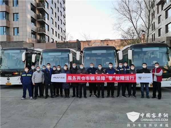 值得一提的是,此次福田欧辉特地派出六十余名服务、技术、质量干将,组成两会服务保障团队,兵分六组,提前进驻服务站,为44辆两会用车全程提供检测维护。