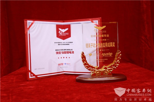 微宏钛酸锂电池荣获影响中国客车业“锂离子动力电池应用成果” 奖