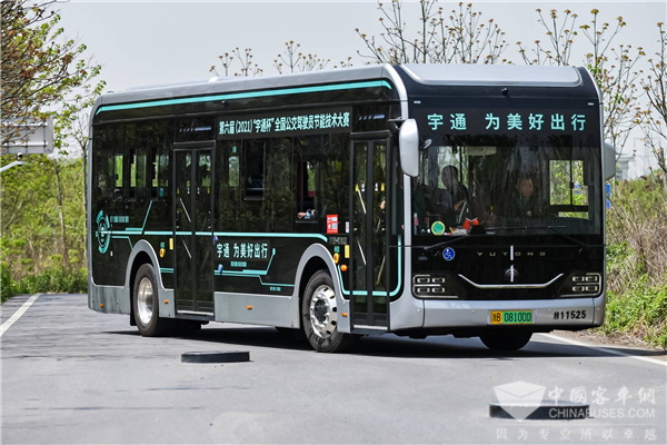 大赛中,10.5米和12米的宇通“宇威”造型高端智能网联公交车担任比赛用车,该车在造型、性能、结构、网联化、电动化、智能化方面进行了全面升级,技术水平与世界接轨。该车为赛事保驾护航,既是智能网联公交进一步推广普及的象征,同时也树立了新时代公交车安全、智能、绿色的新形象。